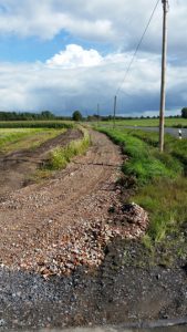 Schon im Mai waren ca. 150m des 230m langen Stückes ausgebaggert und mit Schotter verfüllt worden. Nun geht es an die restlichen 80 Meter dieses Weges.
