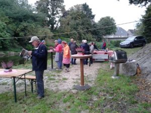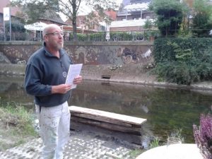 Neben den vielen anderen Dingen in und um Albersloh, die der Heimatverein Albersloh auf die Beine gestellt hat, stellte hier am Ort der Künstler Ben Uhlenbrock seine Gemälde an den Wänden des Werseufers vor.