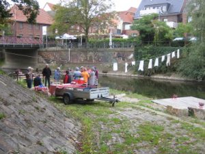 Nachdem die die künstlerische Gestaltung der Wersebrücke an der Münsterstraße abegschlossen ist, lud der Heimatverein am 25. September zur Einweihung des Waschsteges und der Kunst. (Google Maps)