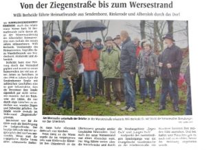 Nach dem Start auf dem Dorfplatz führte die Wanderung durch das Dorf. Dabei ging es durch die Ziegenstraße, zu einer Mariengrotte an der Ludgerusstraße hinter dem Altersheim und in und um die Ludgerus-Kirche. Auch die neu gestalteten Wände and der Wersebrücke und der neue Wersestrand lagen auf dem Weg.