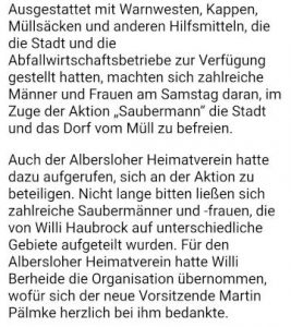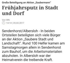 Wie in jedem Frühjahr fand am Samstag den 4.3.2017 die diesjährige „Aktion Saubermann” statt, dieses mal aber um einen guten Monat früher als im letzten Jahr.