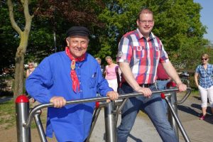 Am Sonntag den 8.5.2016 wurden am Wersestrand zwei Fitnessgeräte eingeweiht. Ein Gerät zum Training der Beine; nach dem Aussehen würde ich es als Beinschaukel oder Beinschwinger bezeichnen, weil man die Beine damit ordentlich hin und her schwingen lassen kann. Und das ohne die Übertragung von Kräften, wie es beim Laufen notwendig ist.