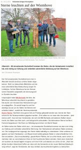Anfang Dezember wurden vom Heimatverein 8 Stelen mit Sternen auf der Wiemhove aufgestellt. Sie leuchten in der Adventszeit zwischen 6 Uhr und 9 Uhr, sowie von 16 bis 23 Uhr.