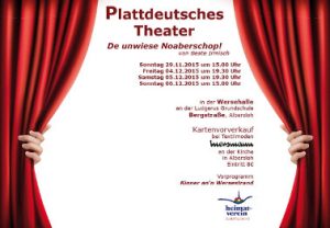 Die Theatergruppe im Heimatverein Albersloh möchte mit seinen Aufführungen von Theaterstücken in plattdeutscher Sprache dazu beitragen, daß die plattdeutsche Sprache nicht in Vergessenheit gerät. Wenn auch viele von uns diese Sprache nicht mehr sprechen können, so verstehen wir sie aber noch.