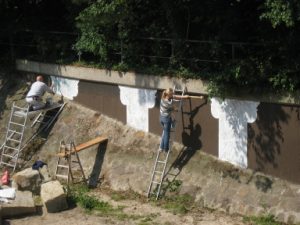 Um das Projekt des Heimatvereins, die Betonwände an Wersebrücke der Münsterstraße großflächig bemalen zu lassen, in die Realität umzusetzen, musste der Beton gereinigt werden.